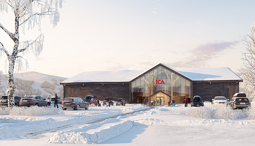 ICA Supermarket Lindvallen byggs helt i massivträ för ett minskat klimatavtryck…
